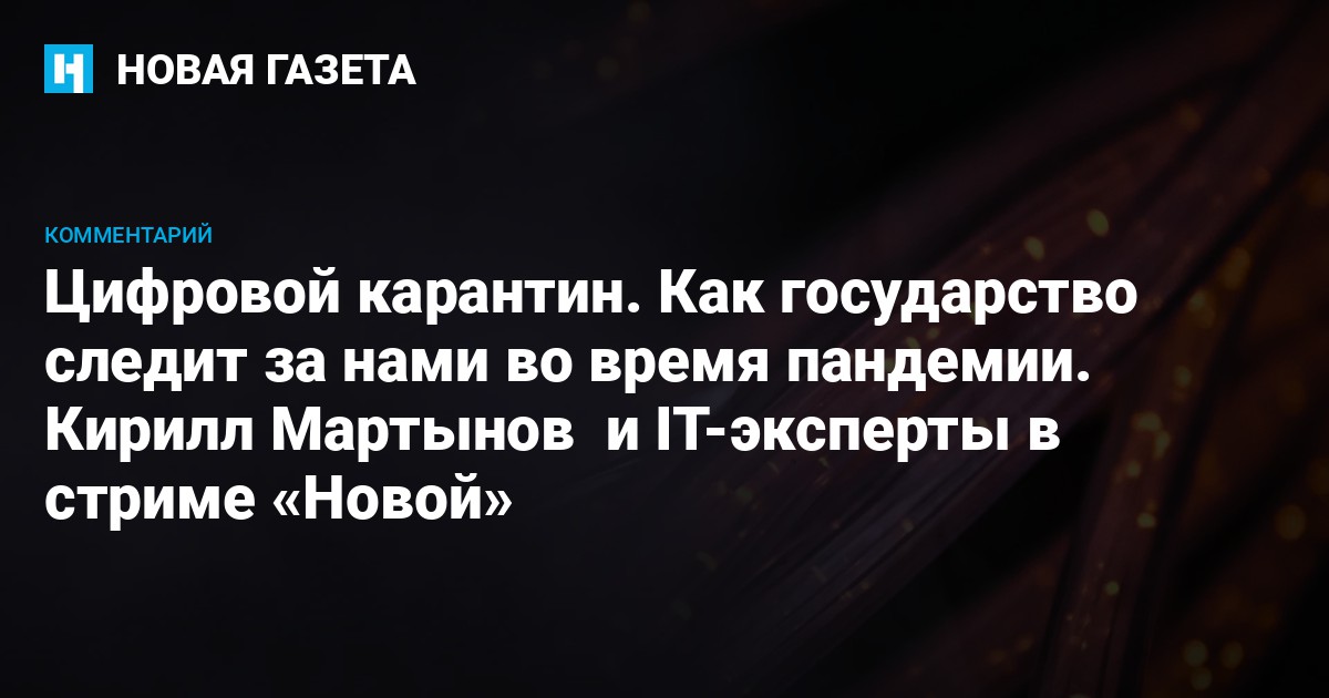 20 мая в 20:00 Кирилл Мартынов поговорит с экспертами о последних цифровых тенденциях. Артур Хачуян, генеральный директор SocialDataHub, расскажет, как новые «карантинные» системы собирают информацию о гражданах. Михаил Климарев, исполнительный директор Общества защиты интернета, объяснит, возможно ли сейчас успешно защищать свои данные. Алексей Куприянов, доцент НИУ ВШЭ, расскажет о махинациях с коронавирусной статистикой.