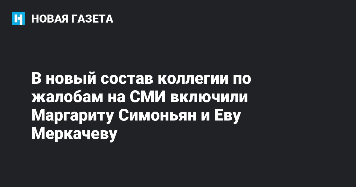В коллегию также включили главного редактора Russia Today Маргариту Симоньян, члена московской ОНК и журналистку «МК» Еву Меркачеву и члена президентского СПЧ Ирину Киркору. Из состава СПЧ там остались в том числе главред «МК» Павел Гусев и глава кафедры новых медиа факультета журналистики МГУ Иван Засурский.