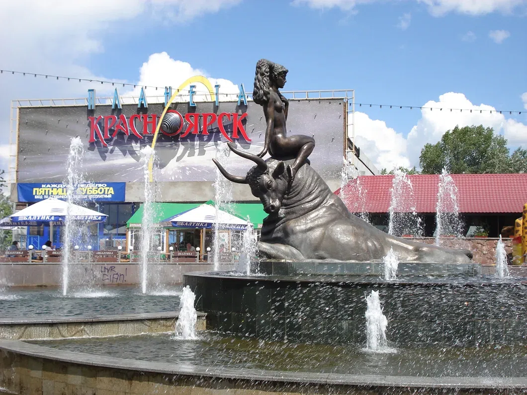 Ларьки на Предмостной, эти сваренные из листового железа собачьи будки с зарешеченными окнами, над которыми лампочками обрамлялось иностранное имя, снесут. В пристройке к «Туристу», бывшей штаб-квартире воровского братства, откроют самое шикарное за Уралом казино «Ессей». Потом у бывшего шоу «Азарт», прямо на том месте, где рвануло перед быковским «мерсом», и Быков вышел, и на голову ему с неба летели камни, красноярцы устроят фонтан, в чаше которого разместят скульптурную композицию: голая и довольная девица с панковской прической уселась на быка — даже не на спину, а на хребет, чуть не на голову. Все в курсе, что там у быка с девицей Европой было дальше.