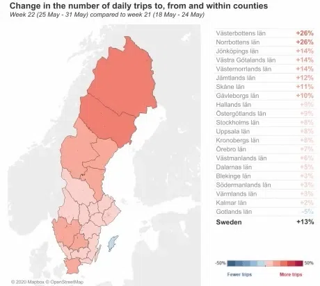 Однако успех шведской стратегии в ограничении контактов не всегда очевиден. Проверки органов санэпидемконтроля в прошлом месяце выявили нарушения в работе общепита — заполненность заведений не отвечала установленным стандартам. Анализ GPS-данных телекоммуникационной компании Telia показывает, что к концу весны активность перемещений шведов постепенно стала приближаться к докоронавирусным значениям. Кроме того, принятые в мае агентством Тегнелля правила гласят, что инфицированный сотрудник может выходить на работу, если у него в течение 48 часов не наблюдается симптомов коронавируса, а это в отдельных случаях затрудняет изоляцию.