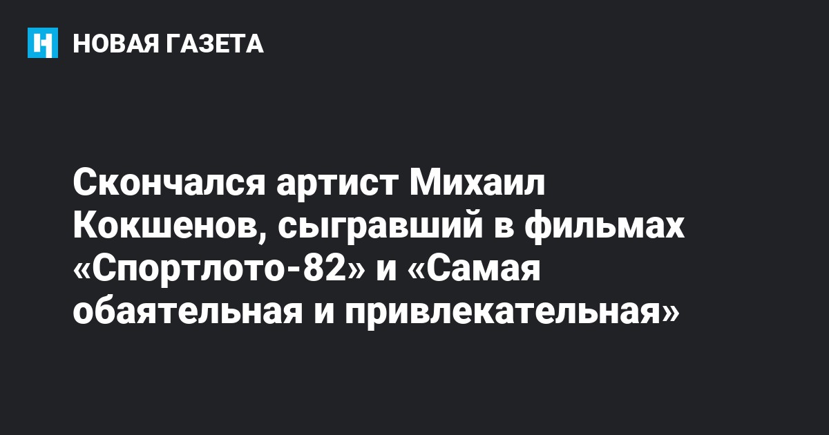 На 84-м году жизни скончался народный артист России Михаил Кокшенов, сыгравший в фильмах «Спортлото-82» и «Самая обаятельная и привлекательная». Об этом в своем фейсбуке сообщила поэтесса Любовь Воропаева.