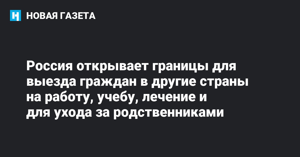 Россия решила открыть границы для выезда граждан в другие страны на работу, учебу, лечение, а также ухода за родственниками. Слова премьера Михаила Мишустина приводит РИА Новости.
