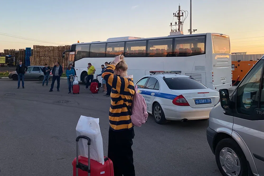 С 8 утра пятницы люди сидели на чемоданах. Первый автобус приехал к десяти, чуть позже — второй. На посадку приглашали по одному. В итоге автобусы отъехали от отеля около 13 часов. Но направились не в Петербург…