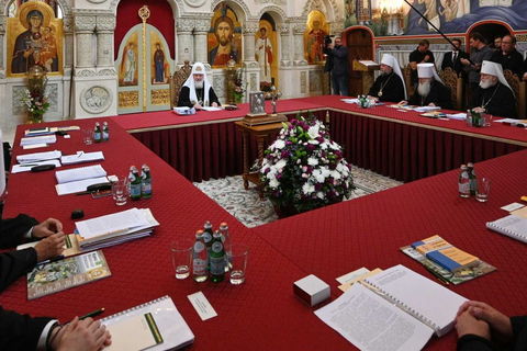 Дочитав проповедь, он говорит, что решил допустить журналистов в обитель. И просит верующих пройти к прессе с ним. Из храма выходит внушительная процессия.