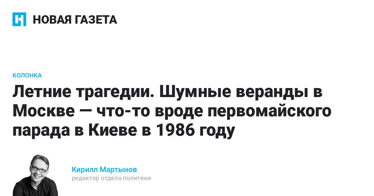 В считанные дни в Москве уличные плакаты с призывами оставаться дома сменились на предложения голосовать за Конституцию. Вместо взвешенной дискуссии о темпах выхода из карантина в городе с одной из самых больших в Европе плотностью населения мы имеем показуху и необходимость понравиться начальству. Шумные летние веранды после 9 июня в Москве — что-то вроде первомайского парада в Киеве в 1986 году: неизвестно, насколько безопасно, но нужно показать, что все в полном порядке.