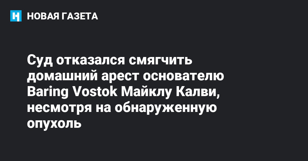 Основатель инвестиционного фонда Baring Vostok Майкл Калви страдает онкологическим заболеванием. Об этом, как передает РБК, заявили представители защиты Калви во время рассмотрения в суде апелляции на его содержание под домашним арестом.