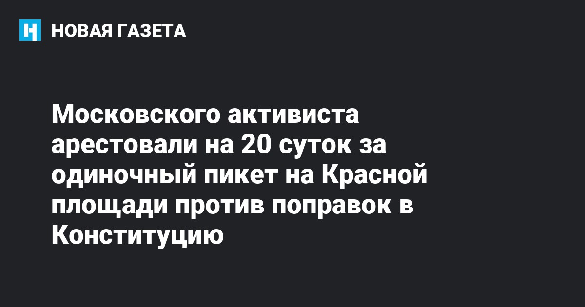 Тверской районный суд Москвы арестовал активиста Виктора Немытова на 20 суток за одиночный пикет на Красной площади против поправок в Конституцию. Об этом сообщает «Апология протеста».