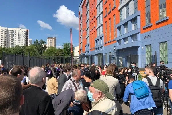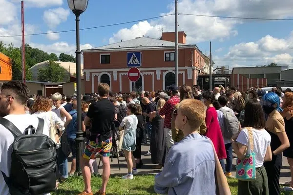 Сегодня в 11:00 в Мещанском районном суде должны огласить решение по делу «Седьмой студии». Его должна вынести судья Олеся Менделеева. Несмотря на то, что до заседания еще час, у здания суда собираются люди, сейчас там около 50 человек. Среди пришедших поддержать фигурантов — актриса Юлия Ауг и актеры «Гоголь-центра».
