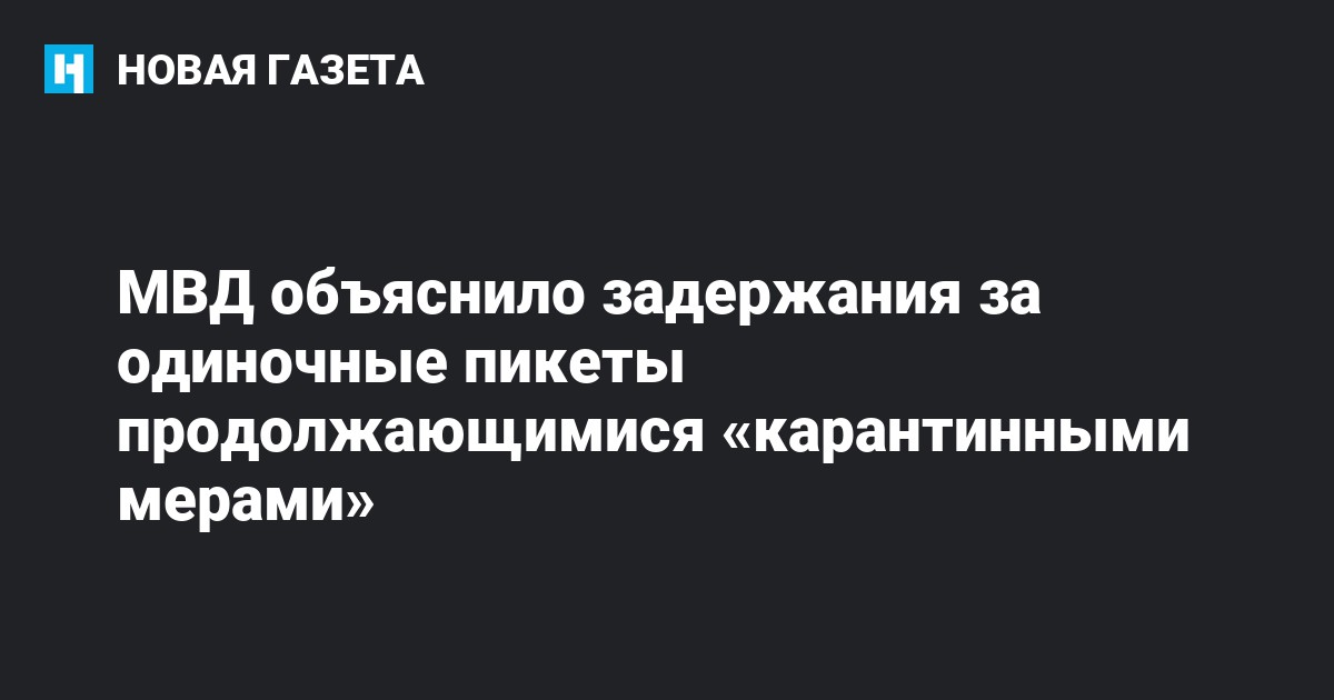 В МВД объяснили задержания за одиночные пикеты тем, что в стране продолжают действовать меры по профилактике распространения коронавируса. Как передает Интерфакс, такой ответ министерство предоставило Союзу журналистов России, члены которого потребовали объяснить им причины задержания во время одиночных акций.