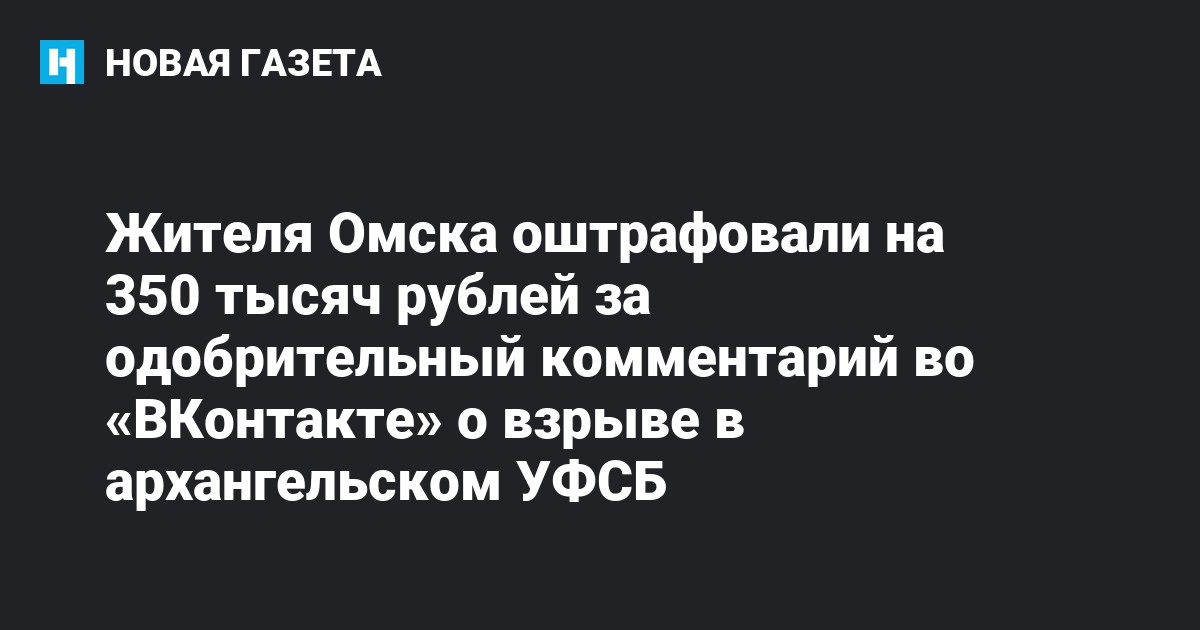 1-й восточный окружной военный суд на выездном заседании в Омске признал 53-летнего жителя города, оставившего одобрительный комментарий о взрыве в архангельском УФСБ, виновным в оправдании терроризма и назначил ему штраф в 350 тысяч рублей.