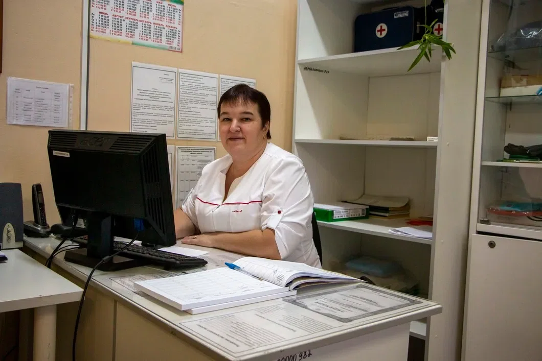 У нее покраснело лицо, и фельдшер предложил измерить ей давление — наконец-то вижу в действии процедурный кабинет.