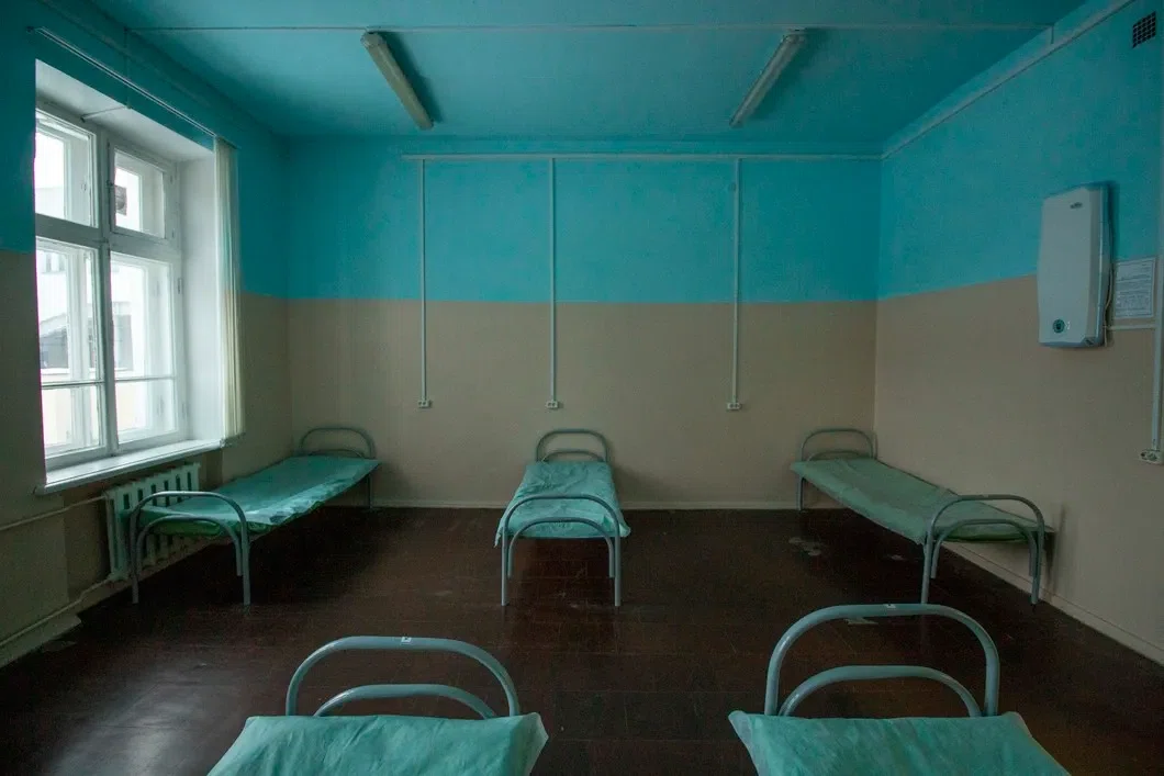 Прохожу в палаты: мужская от женской ничем не отличается, кроме таблички на двери. Серые железные койки, заправленные одноразовыми простынями, бактерицидный облучатель, принудительная вытяжка, большие окна.