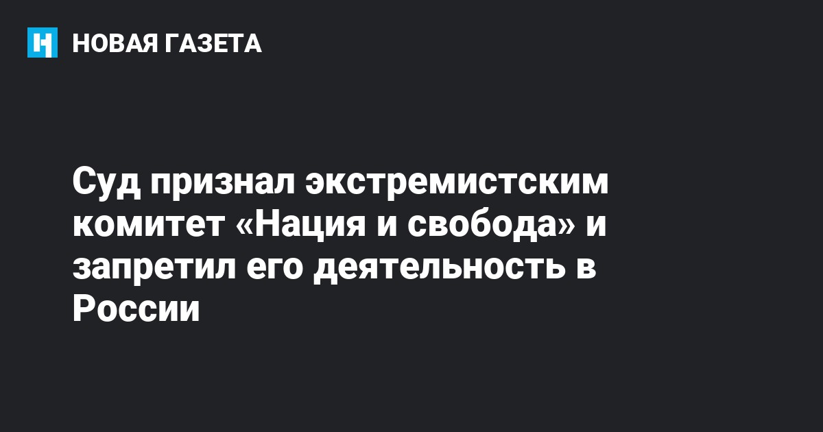Красноярский краевой суд признал экстремистским комитет «Нация и свобода» (КНС) и запретил его деятельность на территории России. Об этом говорится на сайте Генпрокуратуры.