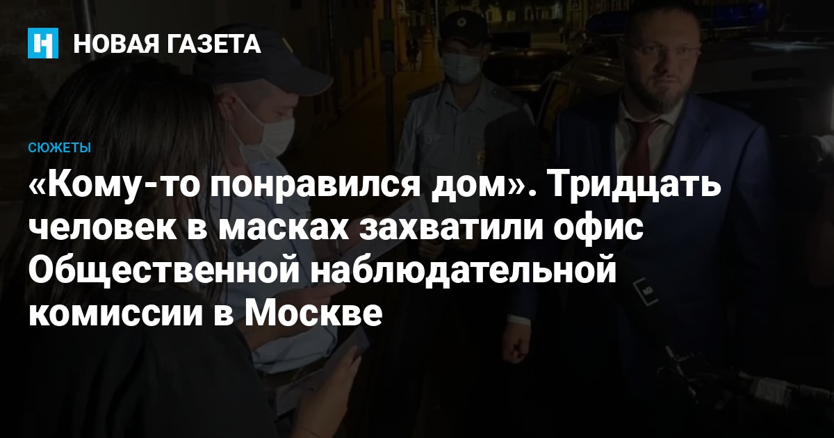 О захвате здания члены ОНК узнали накануне вечером. Как рассказал «Новой» ответственный секретарь комиссии Алексей Мельников, пятого августа в районе семи часов он и другие члены комиссии приехали в офис, чтобы забрать корреспонденцию. Им это сделать не удалось — вход на территорию был перекрыт белой машиной с затемненными стеклами, без номеров. Вокруг автомобиля ходили люди «крепкого телосложения», в медицинских масках, из-за чего их было невозможно опознать.