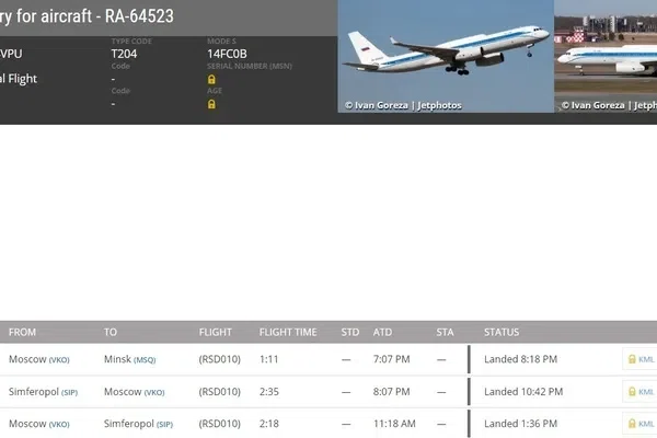 Cамолет Ту-214ВПУ (высотный пункт управления) специального летного отряда «Россия» прибыл вечером во вторник из Москвы в Минск, свидетельствуют данные портала Flightradar.