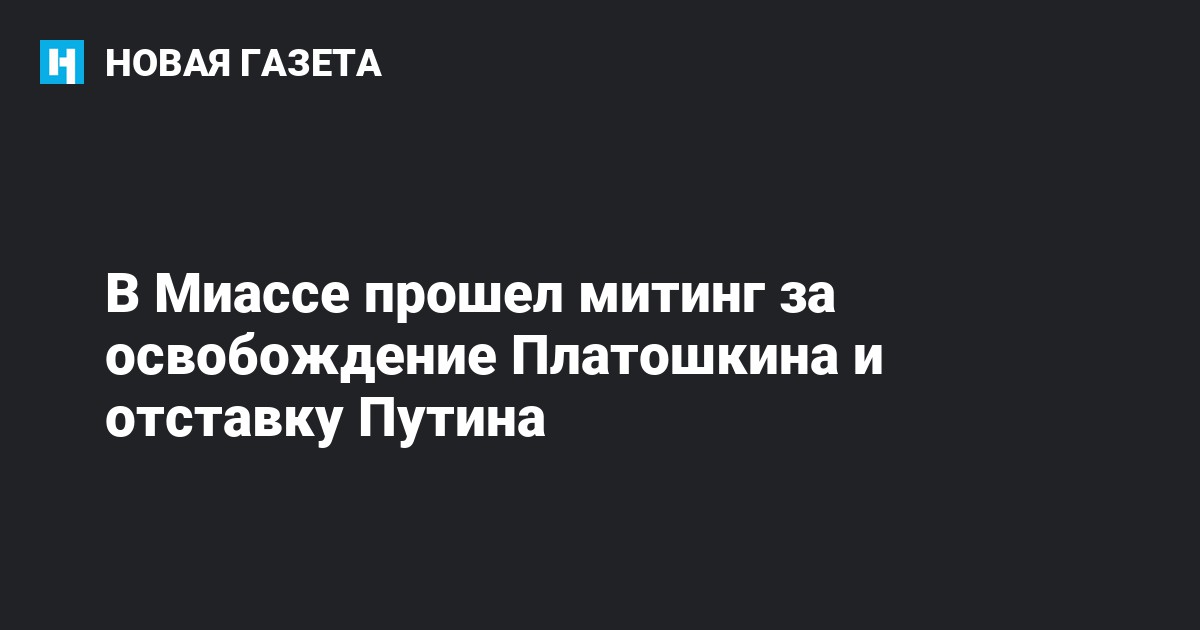 В Миассе прошел митинг за отставку президента России Владимира Путина и освобождение основателя движения «За новый социализм» Николая Платошкина. По оценкам протестующих, на митинг пришло около 80 человек. Организатором акции выступило «Движение за новый социализм». Так же участие в митинге приняли «Коммунисты России» и «Левый фронт».