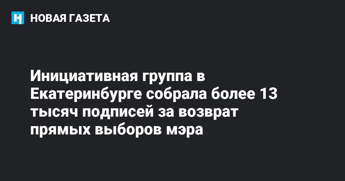 Напомним, инициативная группа по возврату прямых выборов мэров в Свердловской области была зарегистрирована в Екатеринбурге 13 июля 2020 года. Приступить непосредственно к сбору подписей активисты смогли только с 29 июля — после публикации законопроекта в «Областной газете», которая является официальным СМИ Свердловской области.