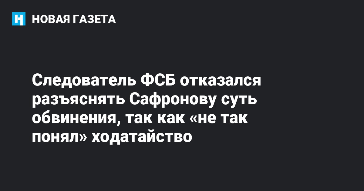 Следователь по особо важным делам СУ ФСБ России Александр Чабан отказался разъяснить бывшему спецкорреспонденту «Коммерсанта» и «Ведомостей», советнику главы «Роскосмоса» Ивану Сафронову суть предъявленного обвинения в госизмене. Об этом «Новой газете» сообщил адвокат Иван Павлов.