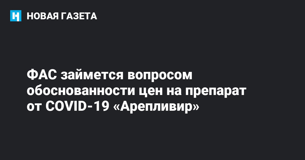 В рамках контроля за соблюдением антимонопольного законодательства Федеральная антимонопольная служба (ФАС) России уже направила запросы фармпроизводителям по вопросу обоснованности оптовой цены на препарат от коронавируса «Арепливир». Об этом «Новой газете» сообщили в пресс-службе ФАС.
