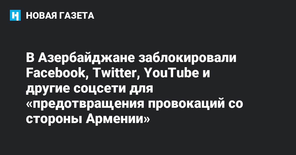 Власти Азербайджана заблокировали Facebook, WhatsApp, YouTube, Instagram, TikTok, Twitter, а также другие мессенджеры и видеохостинги после обострения конфликта в Нагорном Карабахе. Об этом сообщает сервис NetBlocks.org.
