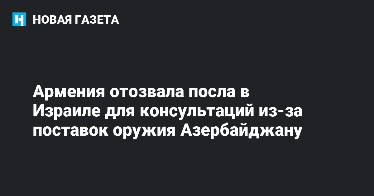 Армения решила отозвать посла в Израиле для консультаций из-за поставок оружия Азербайджану. Об этом заявила пресс-секретарь армянского МИД Анна Нагдалян, передает РИА Новости.
