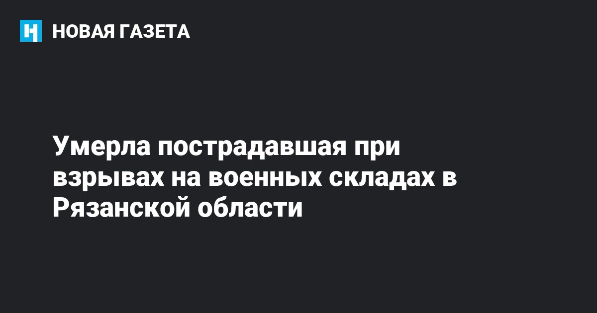 Умерла женщина, пострадавшая во время взрывов на складах боеприпасов в Рязанской области. Об этом сообщил ТАСС глава территориального центра медицины катастроф Сергей Кузьминов.