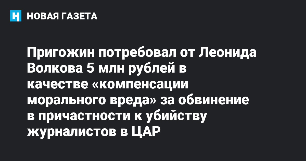 Пригожин считает, что фразы Волкова «особо опасный преступник», «организатор и фактически исполнитель убийства журналистов Джемаля, Расторгуева и Радченко в ЦАР два года назад» и «содержит частную военную компанию, ответственную за сотни человеческих жизней и неисчислимые страдания» — являются «порочащими» для бизнесмена, и уверяет, что они неправдивы.
