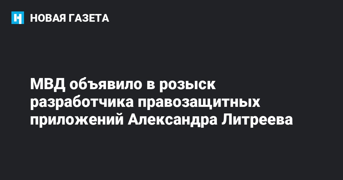 МВД объявило в розыск главу компании «Vee Security Россия», создателя приложения для задержанных на митингах «Красная кнопка» Александра Литреева. Соответствующая информация размещена в базе данных министерства.