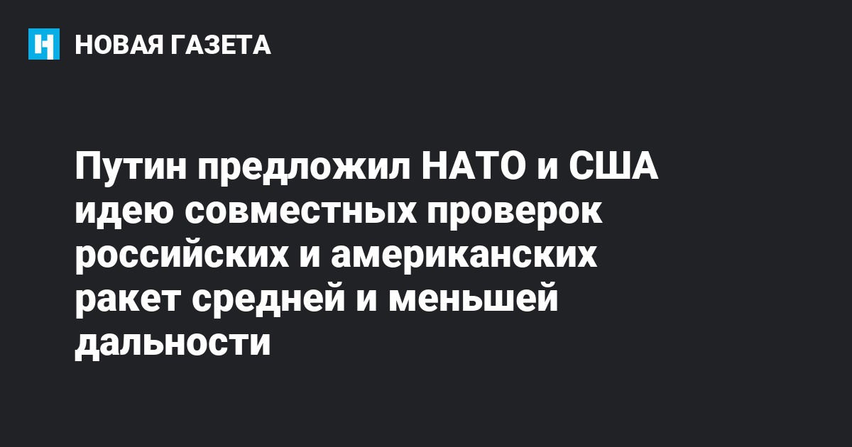 «Речь могла бы идти о мерах проверки в отношении комплексов "Иджис Эшор" с пусковыми установками Мк‑41 на базах США и НАТО в Европе, а также ракет 9М729 на объектах Вооруженных Сил Российской Федерации в Калининградской области», — уточнил глава государства.