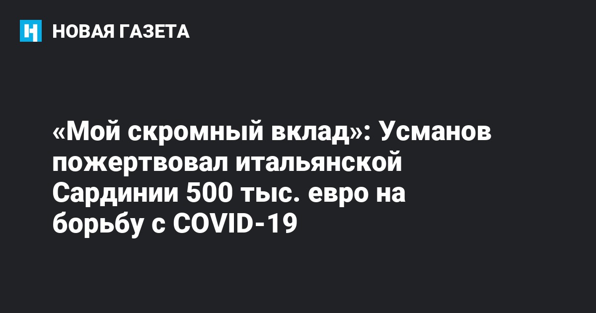 Мой скромный вклад — это меньшее, что я могу сделать для тех, кто пострадал от пандемии, и для тех, кто самоотверженно борется с ней на Сардинии», — пишет Усманов.