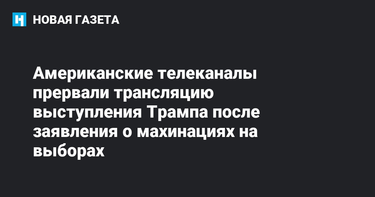 Среди каналов, прервавших трансляцию — ABC, CBS, NBC, MSNBC. «Мы опять оказались в необычной ситуации: не только прерываем выступление президента США, но и поправляем его», — прокомментировал происходящее ведущий MSNBC. Журналисты отметили, что кандидат от республиканцев говорил о недоказанных фактах.