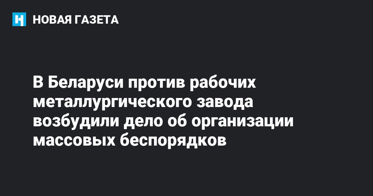 Управление Следственного комитета Беларуси по Гомельской области возбудило уголовное дело об организации массовых беспорядков против четырех сотрудников Белорусского металлургического завода (БМЗ). Об этом сообщает пресс-служба правоохранительной структуры.