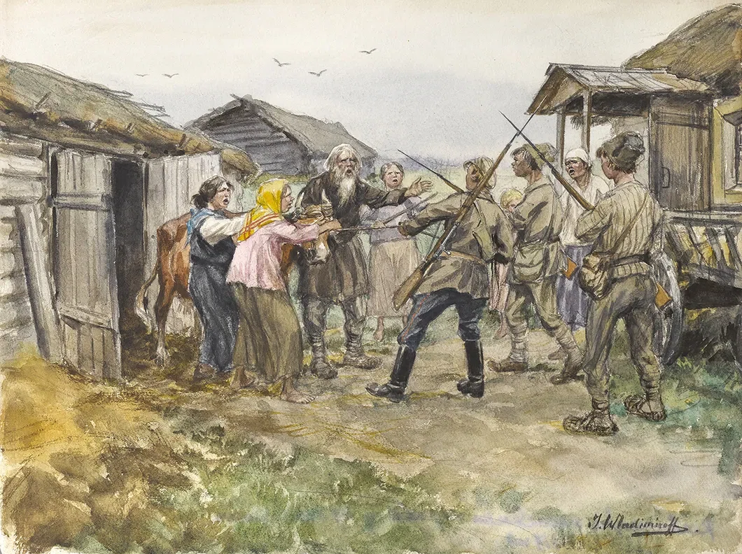 «Реквизиция последней коровы у крестьянина. 1919 год». Коллекция А. Ружникова