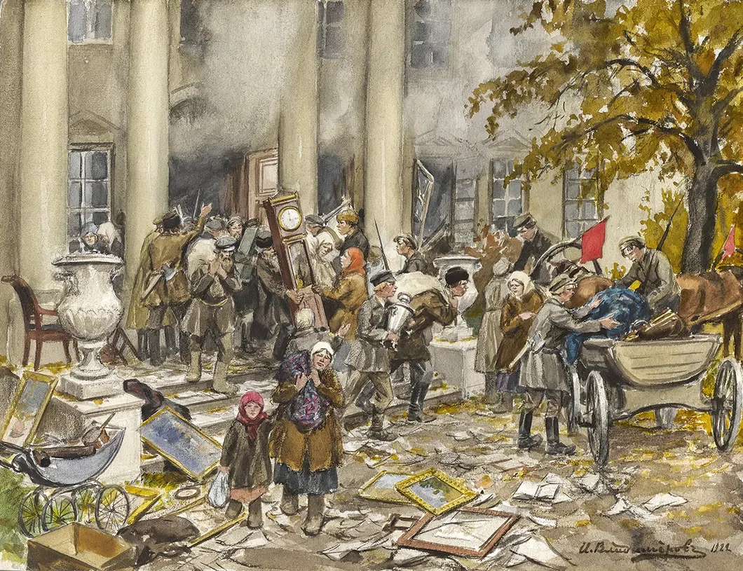 «Разгром барской усадьбы осенью 1919 года (разгром дома князя Васильчикова)». Коллекция А. Ружникова