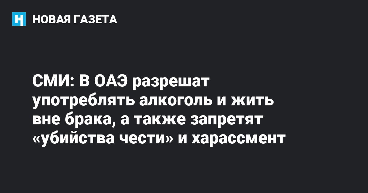 Власти Объединенных Арабских Эмиратов (ОАЭ) анонсировали поправки к нормам исламского права, которые позволят жителям страны свободно покупать и употреблять алкогольные напитки, сожительствовать вне брака, а также защитят женщин от расправ «чести». Об этом сообщают англоязычное проправительственное издание The National и государственное информагентство WAM.