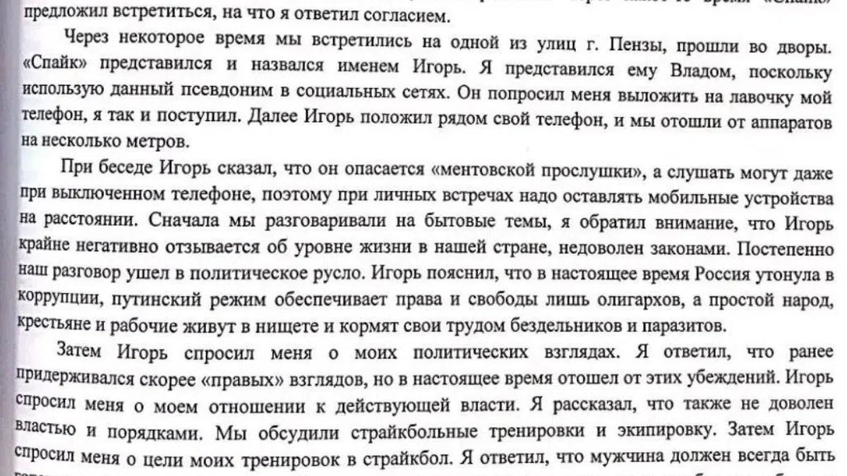 Примечательно, что в чате участники рассуждали, как им себя обезопасить, чтобы к ним не внедрился какой-нибудь «эшник». По иронии судьбы, именно эта переписка оказалась в руках «провокатора», а в чате действительно «сидели» оперативники из Центра по противодействию экстремизму. Как минимум двое — Максим Расторгуев и Юрий Испанцев. Они рассказывали в суде, что были внедрены в группу по заданию органов еще до возбуждения уголовного дела.