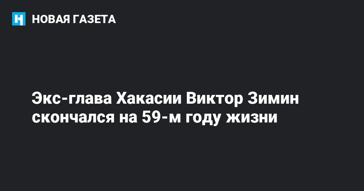 Бывший глава Хакасии, заместитель гендиректора «Российских железных дорог» Виктор Зимин скончался на 59-м году жизни. Он еще в конце августа был госпитализирован с COVID-19. Об этом сообщает «РИА Новости» со ссылкой на главу Аскизского района республики.