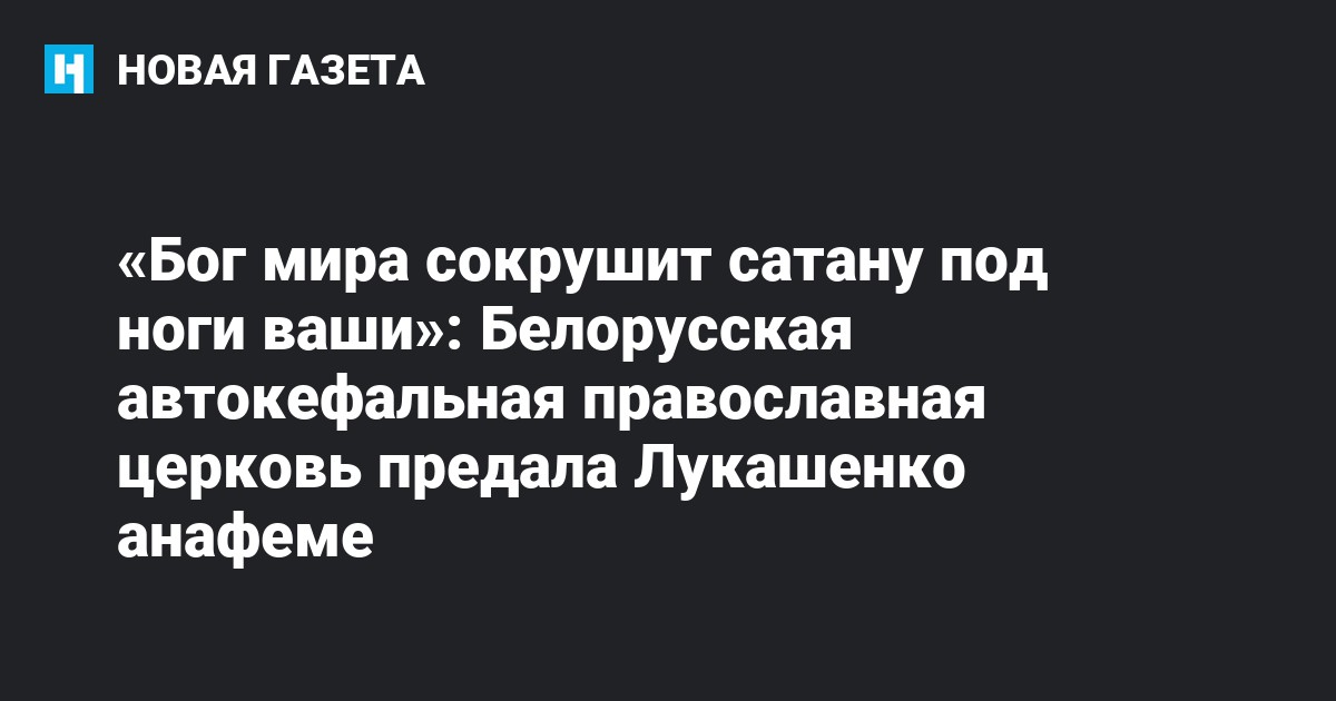 Белорусская автокефальная православная церковь предала анафеме Александра Лукашенко за то, что тот «творит беззакония, преследует и убивает православных и других мирных христиан за правду в Беларуси». Об этом на проповеди в церкви святого Кирилла Туровского в канадском Торонто объявил архиепископ Святослав Логин.