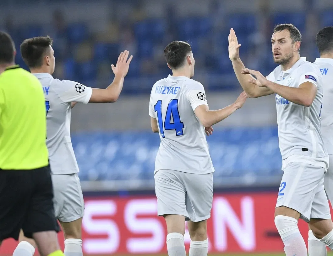 Игроки ФК «Зенит» радуются забитому голу в матче с ФК «Лацио». Фото: РИА Новости