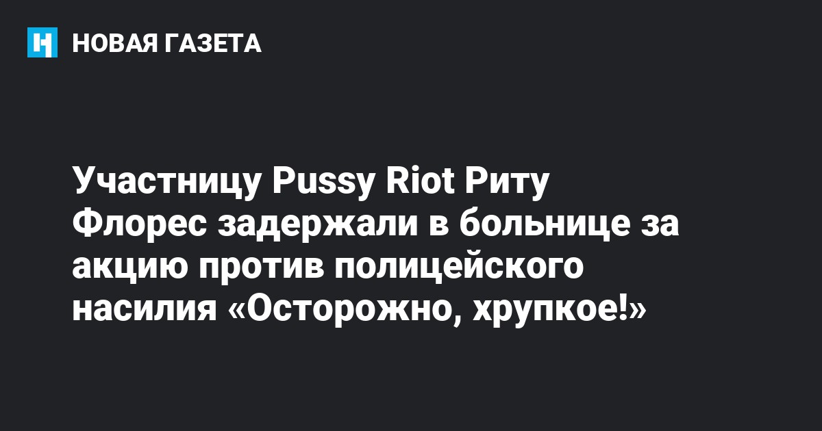 В Москве задержали участницу Pussy Riot Риту Флорес за акцию против полицейского насилия «Осторожно, хрупкое!», которая прошла 28 ноября. Об этом «Новой газете» рассказала другая участница группы Мария Алехина.