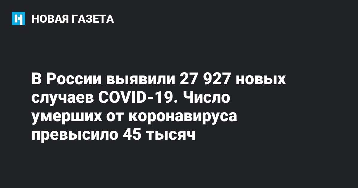 За сутки по всей стране скончались 562 пациента, из них 74 — в Москве, 79 — в Санкт-Петербурге. Общее число умерших непосредственно от коронавируса превысило 45 тысяч.