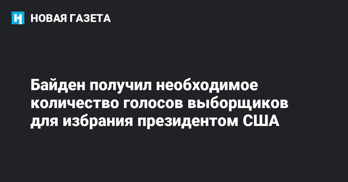 Для победы за кандидата должны были проголосовать как минимум 270 выборщиков. Байден получил 302 голоса, действующий президент США Дональд Трамп — 232. За оппонента американского лидера проголосовали, в частности, выборщики из Калифорнии (55 голосов) Пенсильвании (20 голосов), Висконсина (10 голосов), Джорджии и Мичигана (по 16 голосов), Невады (6 голосов), а также Аризоны (11 голосов).