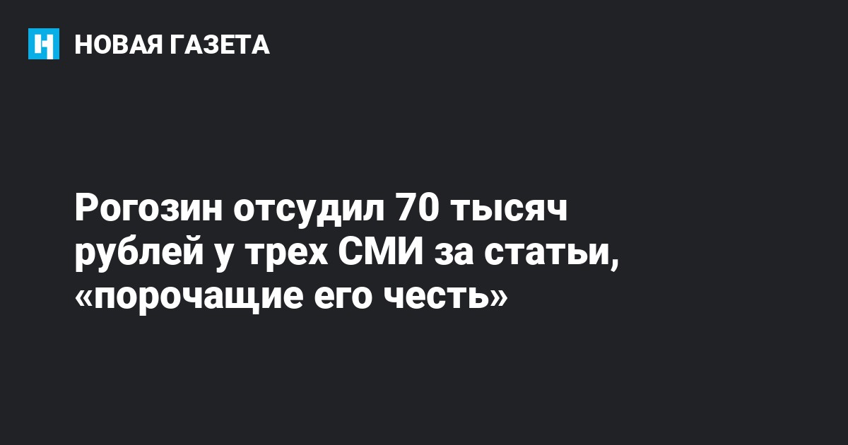Останкинский суд Москвы обязал ООО «Неоход-медиа», ООО «ПремьерМедиаИнвест» и АО ИД «Аргументы недели» выплатить 70 тысяч рублей в качестве компенсации морального ущерба, причиненного главе госкорпорации «Роскосмос» Дмитрию Рогозину. Об этом сообщает «МБХ медиа» со ссылкой на пресс-службу суда.