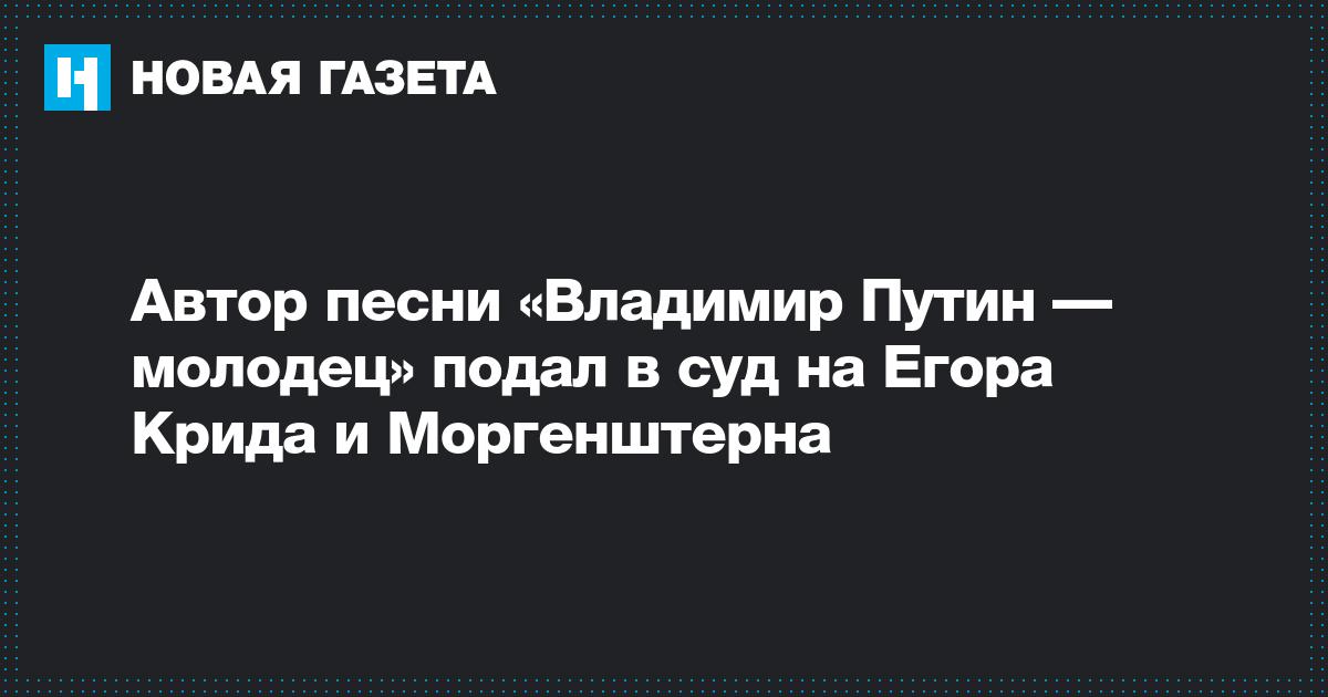 Автор песни «Владимир Путин — молодец» подал в суд на Егора Крида и Моргенштерна