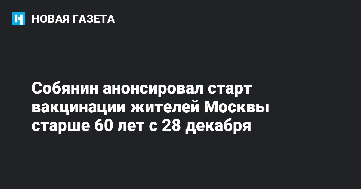 Мэр Москвы Сергей Собянин заявил, что с 28 декабря жители столицы старше 60 лет смогут записаться на вакцинацию от коронавируса российским препаратом «Спутник V». Об этом мэр сообщил в своем блоге.