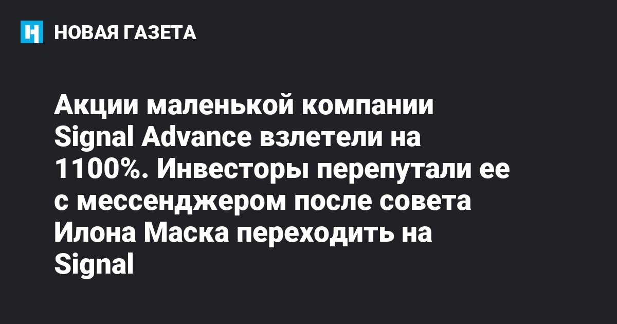 После этого инвесторы начали скупать акции Signal, но не учли, что мессенджер действует на некоммерческой основе и не торгуется на бирже. В результате произошла массовая скупка компании с похожим названием — Signal Advance.