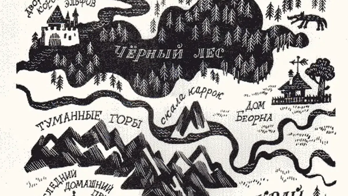 Карта Средиземья к первому изданию «Хоббита» в СССР. Художник Михаил Беломлинский