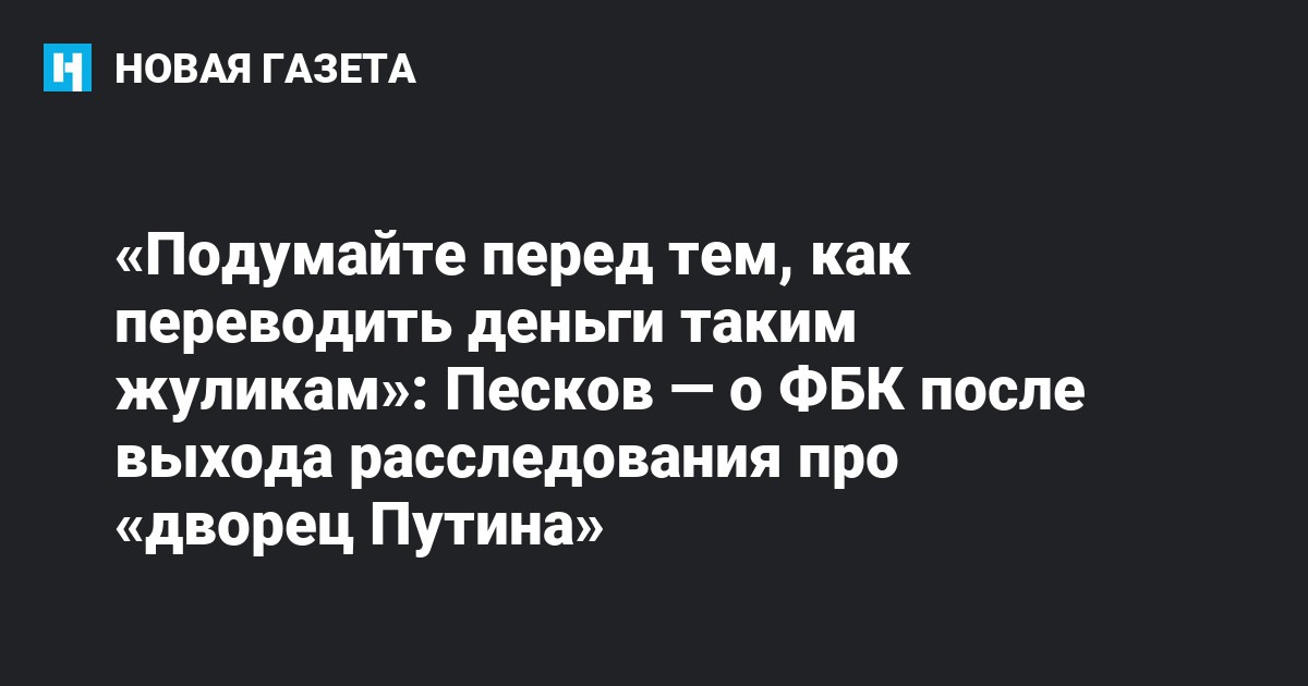 По мнению Пескова, цель подобных материалов — получение денег жульническими способами. «В конце этого чудесного материала указаны номера счетов с просьбой перечислять туда деньги. Мне кажется, что это, наверное, главная задача подобных материалов, таких псевдорасследований, это и есть главный лохотрон», — сказал он.