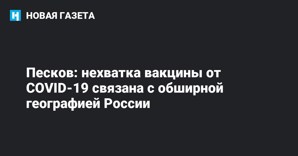 Дефицит вакцины от коронавируса в некоторых регионах России возникает из-за географических особенностей страны и производства, которое пока набирает обороты. Об этом, как передает ТАСС, сообщил пресс-секретарь президента России Дмитрий Песков.