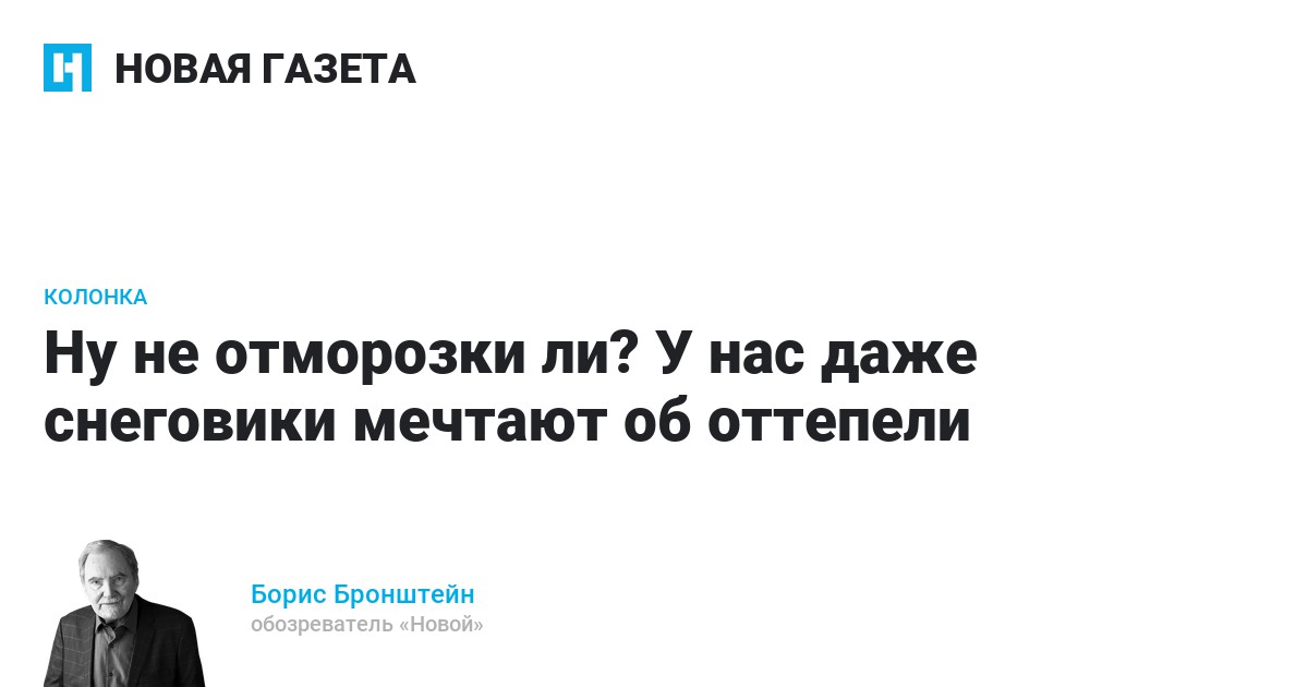 Какая, к Вильфанду, оттепель, когда морозно в стране и слова сказать нельзя! Когда учителю истории и обществознания в Республике Коми пригрозили увольнением за одиночный пикет, а преподавателя московского института театрального искусства из-за участия в протестной акции уже и уволили. Когда Лига студентов Республики Татарстан добивается у администраций здешних вузов снисхождения к граждански активным юношам и девушкам, и те гуманно идут навстречу – обещают не исключать их за участие в акциях протеста. Как будто где-то в законе записано, что за это надо непременно исключать и ссылать в Кокушкино, как когда-то казанского студента Володю Ульянова.